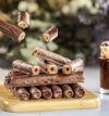 Biscoito de waffle folhado, coberto com chocolate ao leite.