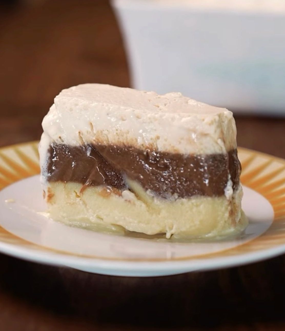 Sobremesa clássica de travessa em três camadas: creme , creme de chocolate e cobertura de merengue com creme de leite – 1,1kg
