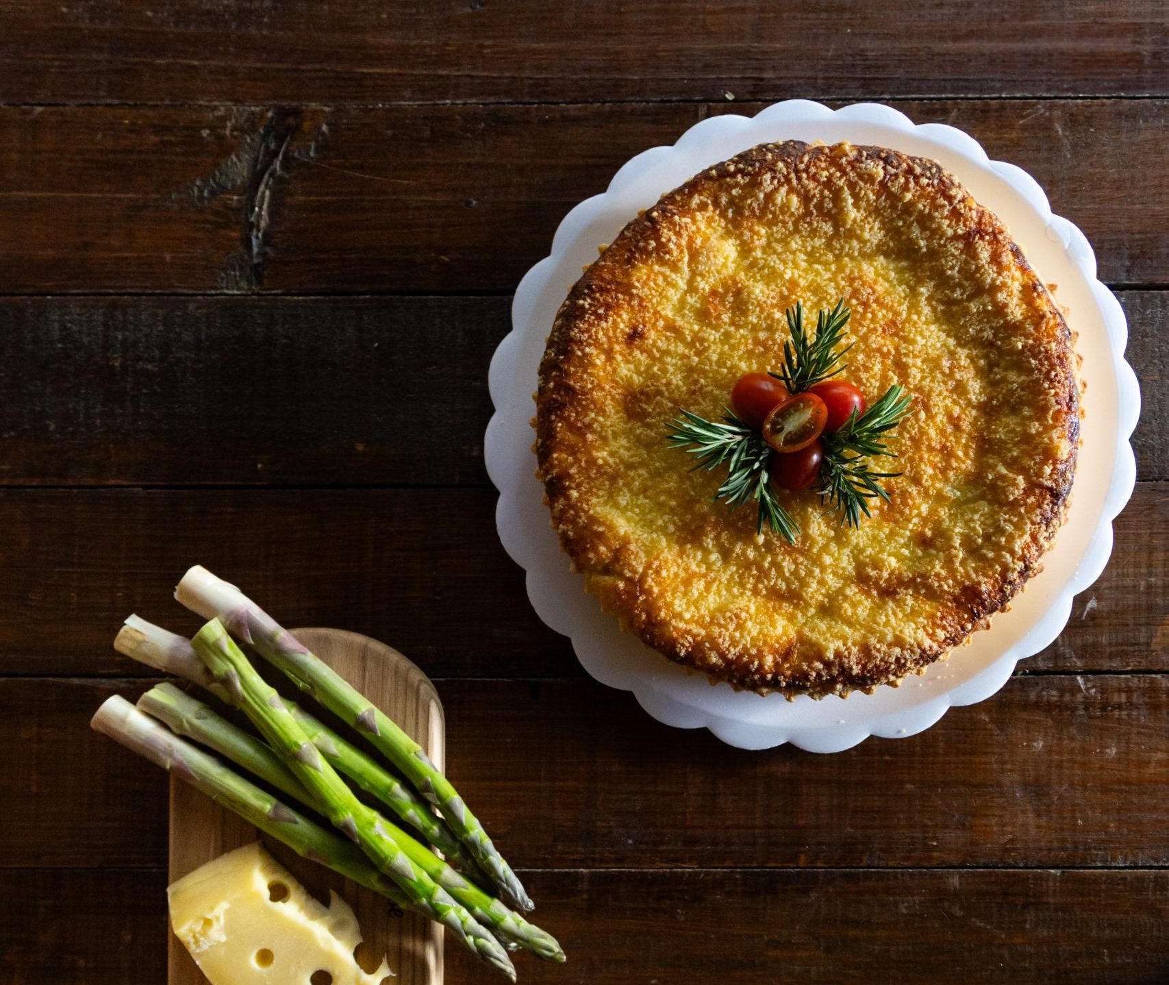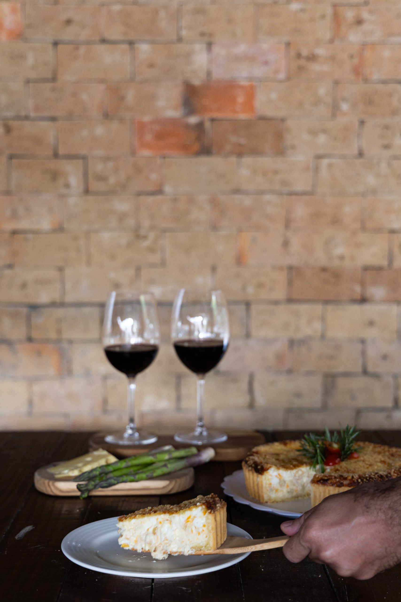 Massa crocante, recheio de creme de aspargos com queijo.